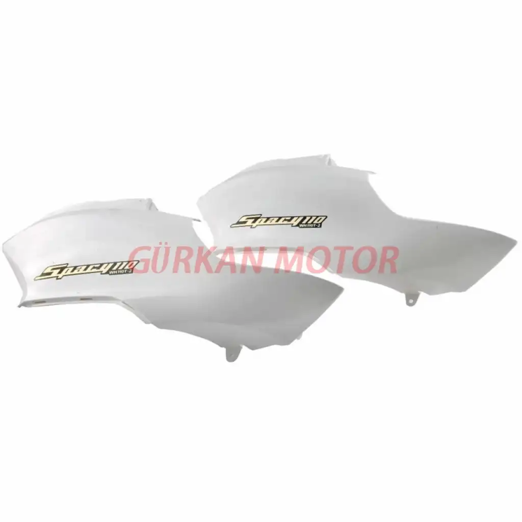 Honda Spacy model motosikletler için özel olarak üretilmiş olan bu arka grenaj sele altı seti (sol ve sağ), motosikletinizin arka yan yüzeyini hem estetik hem de koruyucu anlamda tamamlayan önemli bir parçadır. Beyaz renkli bu grenaj seti, motosikletinize şık ve sade bir görünüm kazandırırken, dış etkenlere karşı koruma sağlar.