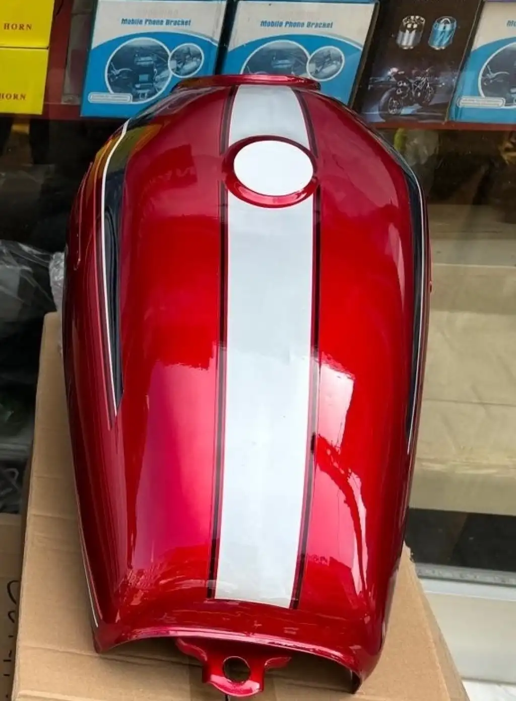 Benzin deposu yüksek kaliteli sac malzemeden üretilmiş olup, dış yüzeyi elektrostatik toz boya ile kırmızı renkte kaplanmıştır. Bu kaplama, çizilmelere, paslanmaya ve güneş ışınlarına karşı dayanıklılık sağlar ve uzun ömürlü kullanım sunar. Kırmızı rengi motosikletinize dinamik ve dikkat çekici bir hava katar.