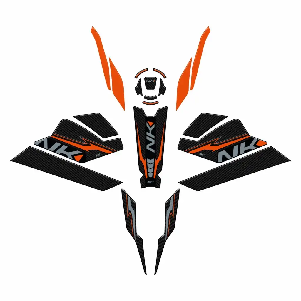 GP Kompozit Full Pad Seti, CF Moto 250 NK’nin 2023 ve 2024 modelleriyle birebir uyum sağlar. Turuncu renk detayı, motosikletin sportif tasarımını ön plana çıkarır ve motosikletinize enerjik bir hava katar. Özellikle CF Moto’nun fabrika çıkışı turuncu renk detaylarıyla kusursuz bir bütünlük oluşturur.