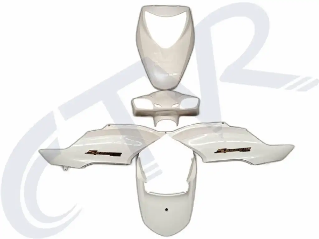 Honda Spacy model scooterlar için özel olarak tasarlanan beyaz kaporta seti, motorunuzun dış görünümünü baştan aşağı yenilemek isteyen kullanıcılar için ideal bir tam takım gövde çözümüdür. Bu set; yıpranmış, çatlamış veya solmuş parçaları değiştirmek ve motoru yepyeni bir görünüme kavuşturmak isteyenler için üretilmiştir.