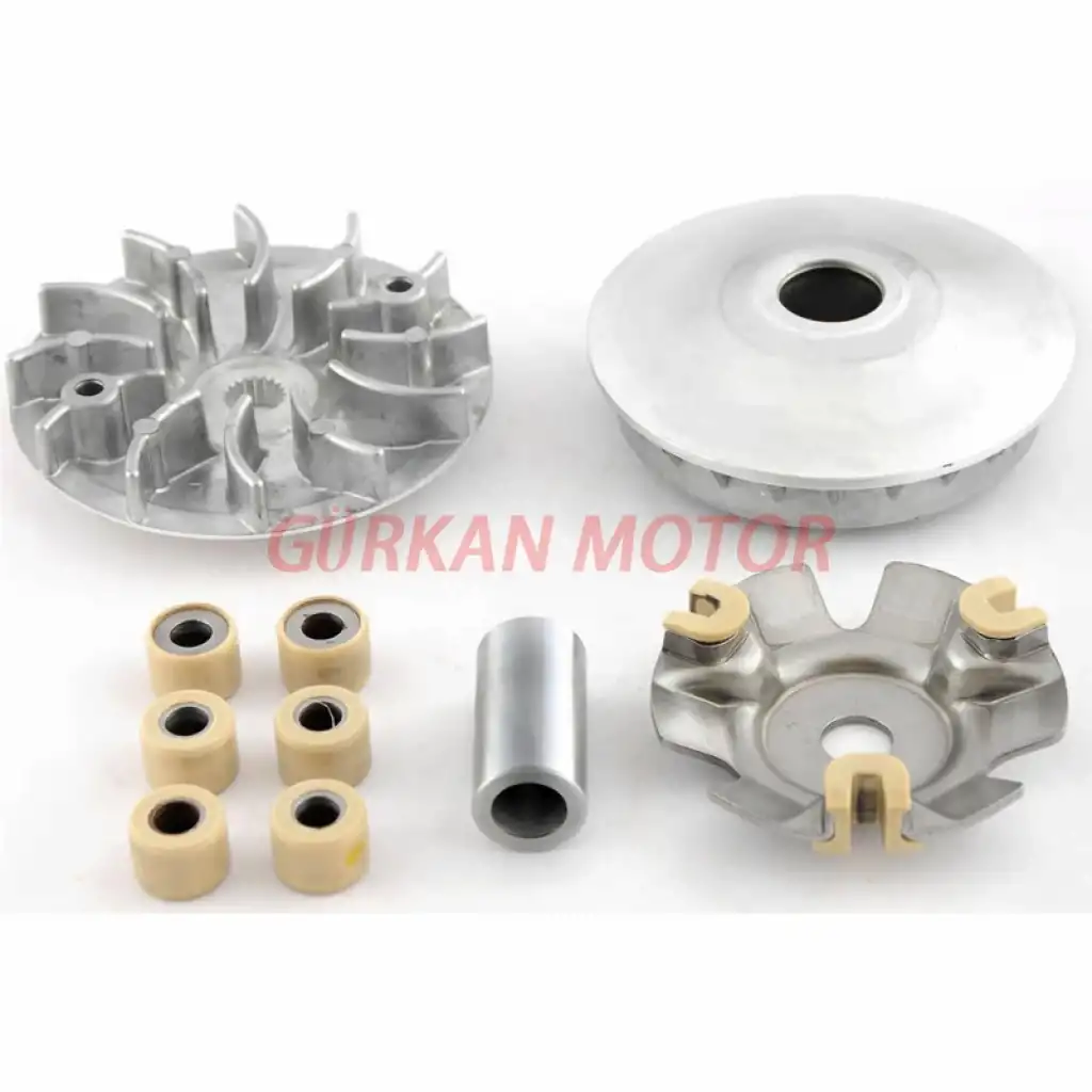 Setin içerisinde genellikle kasnak grubu, baskı plakası, rulo yatağı ve merkez varyatör parçası gibi bileşenler bulunur. Bu parçalar, motor devrine göre otomatik olarak açılıp kapanarak en verimli güç aktarımını sağlar. Sonuç olarak scooter sessiz, titreşimsiz ve dengeli bir kalkış ve ivmelenme sunar.