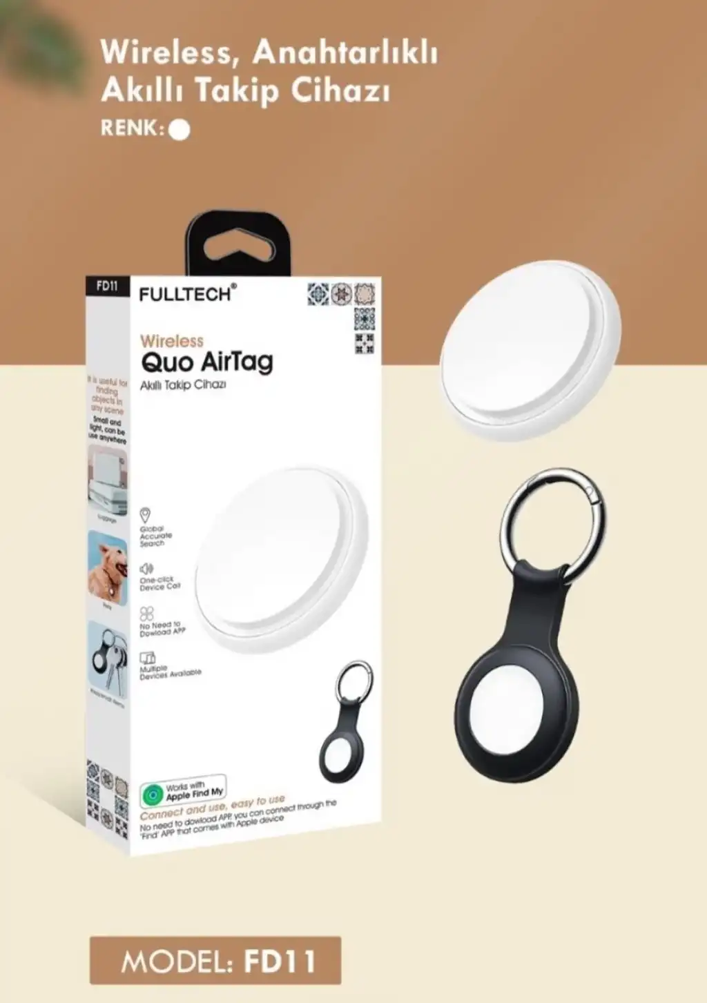 Wireless Anahtarlıklı Akıllı Takip Cihazı (Quo Airtag), pratik kullanımı, geniş kapsama alanı, uzun pil ömrü ve modern tasarımıyla kişisel eşyalarını güvence altına almak isteyen herkes için ideal bir çözümdür.
